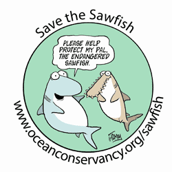 We think Smalltooth sawfish is a very special and odd looking fish! These neat fish are endangered. The Ocean Conservancy is working very hard to make sure they will be around for a long time! Our oceans wouldn’t be the same without these great fish!